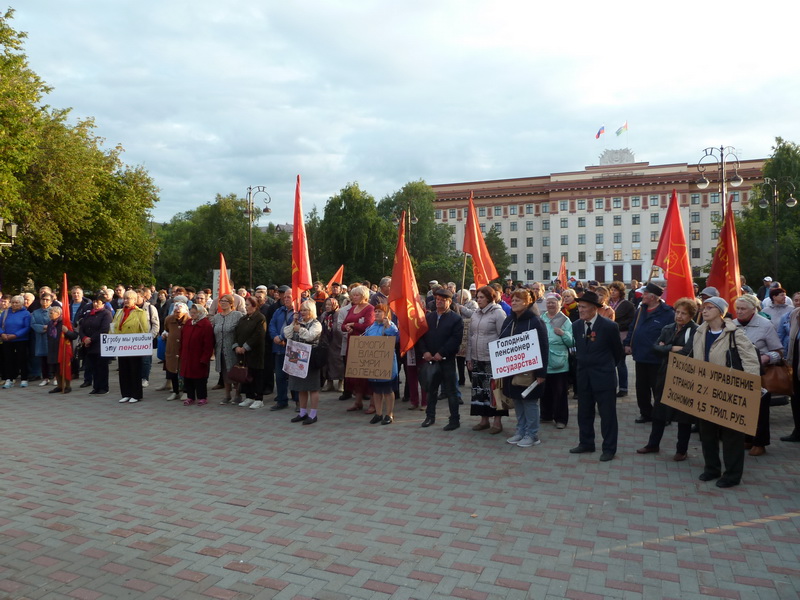 2-3 сентября 2018 г. по всей стране проходили акции протеста против увеличения возраста выхода на пенсию. Тюменский обком РКРП-КПСС, обком РОТ ФРОНТа также подали уведомление о проведении на Центральной площади у памятника В.И. Ленину 3 сентября митинга протеста. Администрация г. Тюмени в очередной раз выдала ничем не мотивированный отказ. Перед 3 сентября пришла информация, что якобы в это время на Центральной площади будет проходить митинг в память о жертвах Беслана. Тема, конечно, благородная, но вот в Тюмени 13 лет не проводился такой митинг. Да и почему для этого нужна именно Центральная площадь в конце рабочего дня? Организаторы митинга против увеличения пенсионного возраста подали свое уведомление самыми первыми в установленный законом срок. Потому Администрация г. Тюмени должна была согласовать именно этот митинг, но она в очередной раз пошла на нарушение закона.