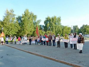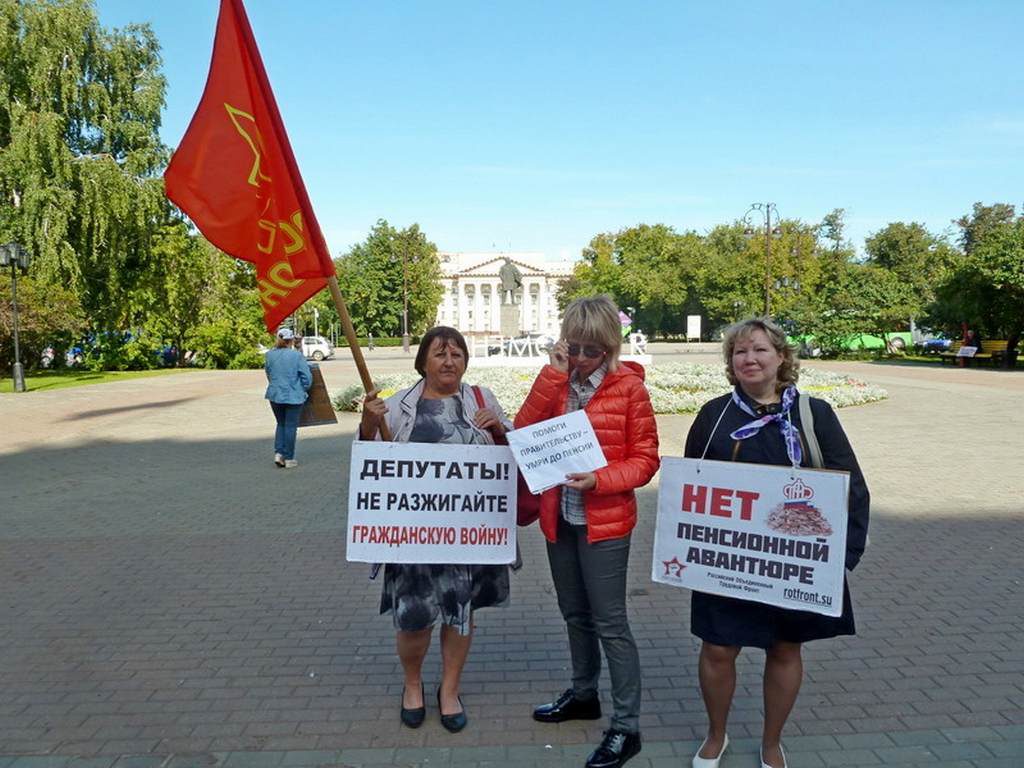 Но тюменцы не намерены допускать депутатам такое наглое отношение к их конституционным правам. И потому акции протеста, против увеличения пенсионного возраста будут продолжаться. А 20 сентября депутаты областной Думы будут рассматривать этот вопрос на своём заседании, поэтому у областной Думы с 8 утра состоится новый пикет, проводимый коммунистами РКРП-КПСС и РОТ ФРОНТа. Обком РОТ ФРОНТа, обком РКРП приглашают тюменцев принять участие в пикете, а затем пройти на заседание комитета по социальной политике, который состоится в 9 часов, и на заседание Тюменской областной Думы, где заявить депутатам областной Думы, что мы против повышения пенсионного возраста.