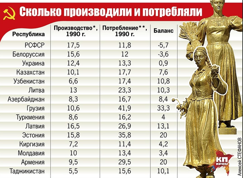 В связи с очередным обострением у националистов, стряхнувших пыль с давнего антисоветского мифа о том, что Россия, якобы, кормила остальные республики СССР. Замечу, что данный миф является зеркальным по отношению к антироссийским мифам, имевшим хождение на территории союзных республик. То есть там ровно также полагают до сих пор, что они кормили Москву и Россию.