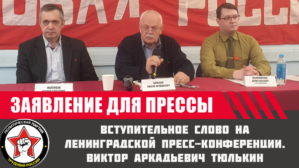 Вступительное слово на пресс-конференции партии «ТРУДОВАЯ РОССИЯ» в Ленинграде лидера РОТ ФРОНТа, секретаря ЦК РКРП Виктора Аркадьевича ТЮЛЬКИНА; 10 апреля 2026 год. =