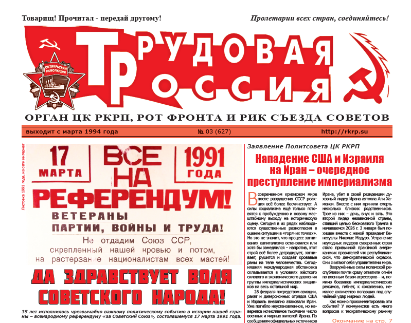 Четвёртый в нынешнем году номер газеты «Трудовая Россия» открывают материалы, посвящённые «красным праздникам» и знаменательным событиям.